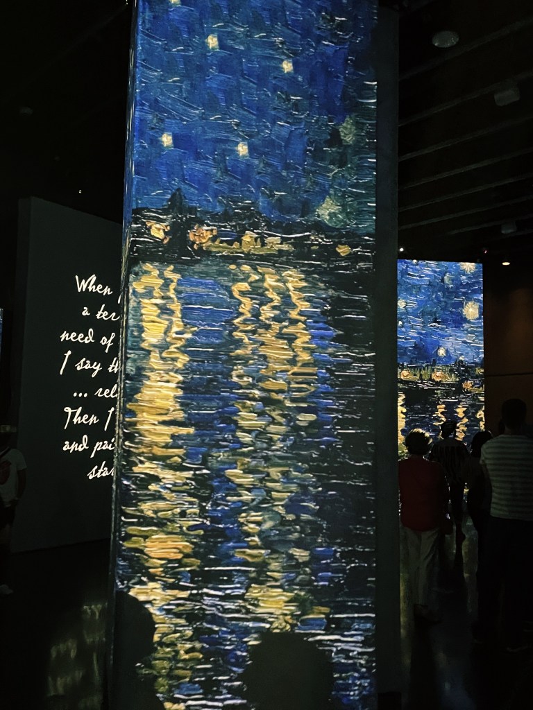 My mom and I went to Van Gogh Alive Exhibit at the Dali museum. I thought it was the coolest thing ever when I watched Emily in Paris and was so excited to learn it had made it to St. Pete. There were a few rooms with Van Gogh quotes and paintings projected on the walls and floor. I remember seeing some of Van Gogh’s work at Rijksmuseum in Amsterdam. Favorite obvi included Starry Night and some pretty flower paintings, but I really liked his windmills. With the classical music and dark, artsy atmosphere, it really felt like it would be the perfect location for a dance company performance. If only…